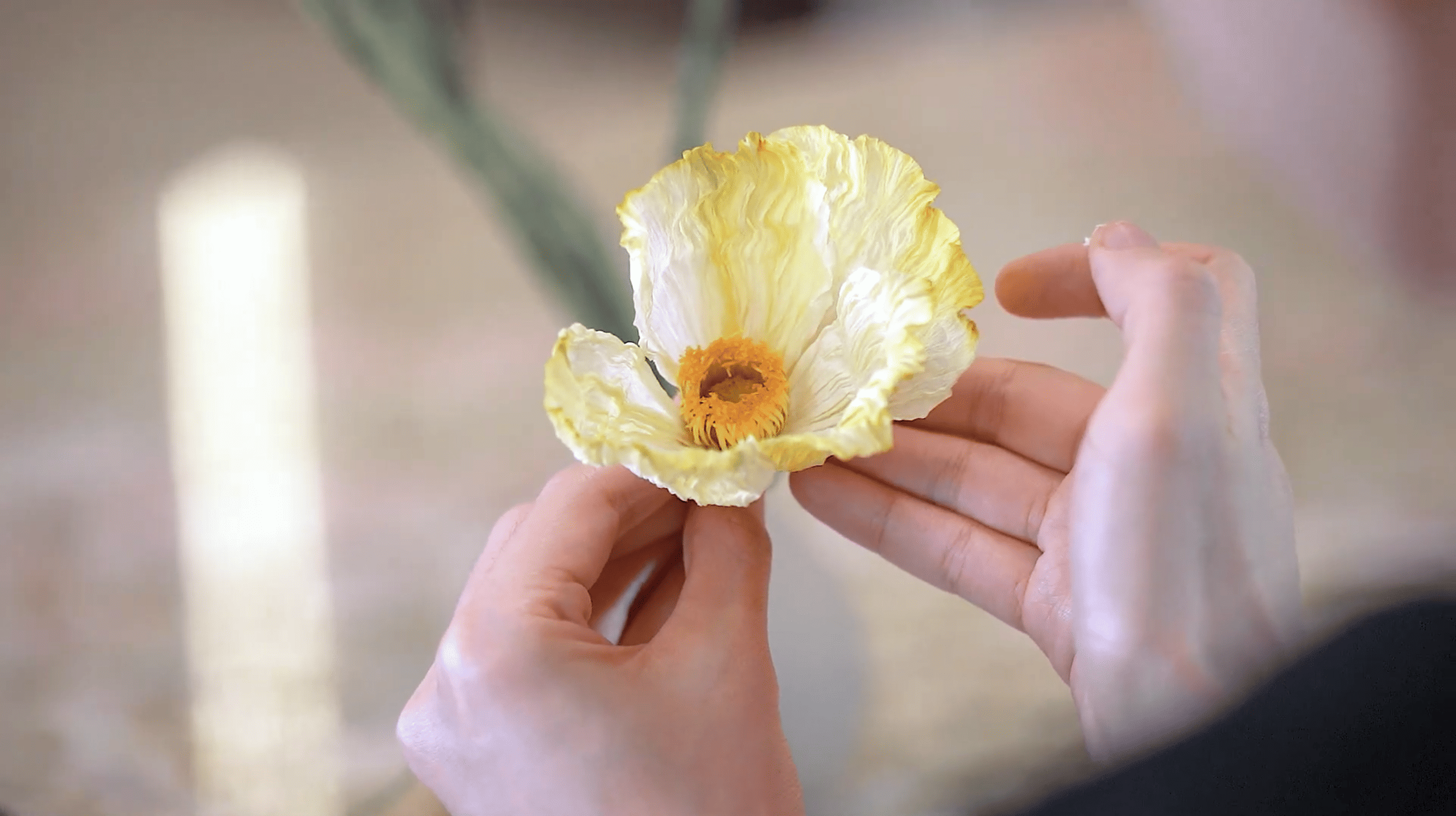 In this section, you'll learn how to create the delicate and vibrant poppy flower using crepe paper. This flower is perfect for beginners and anyone wanting to improve their skills in working with paper florals. You'll explore the essential techniques needed to bring the poppy to life, from shaping the center to assembling realistic petals and coloring for added depth. You'll also pick up helpful tips on how to handle crepe paper with confidence.