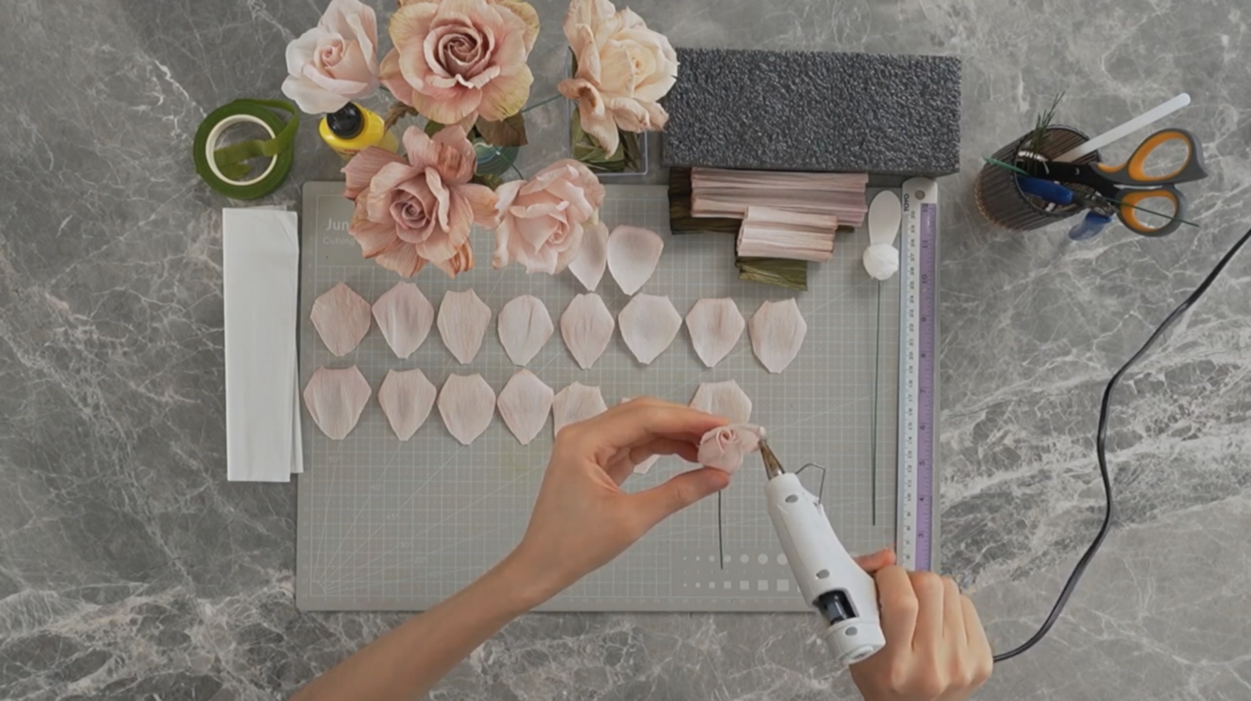 - Cut and shape the rose petals